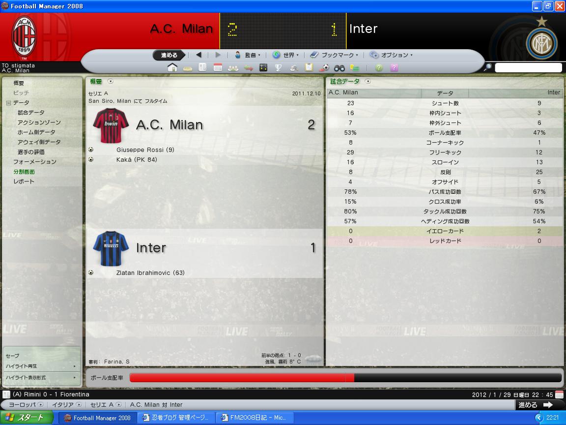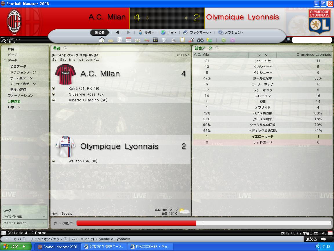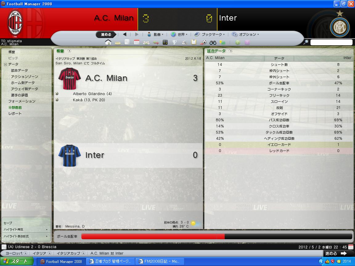 ホームで4-0の圧勝。アウェイで1-0と負けましたが、総得点でミランの一回戦突破'-')b