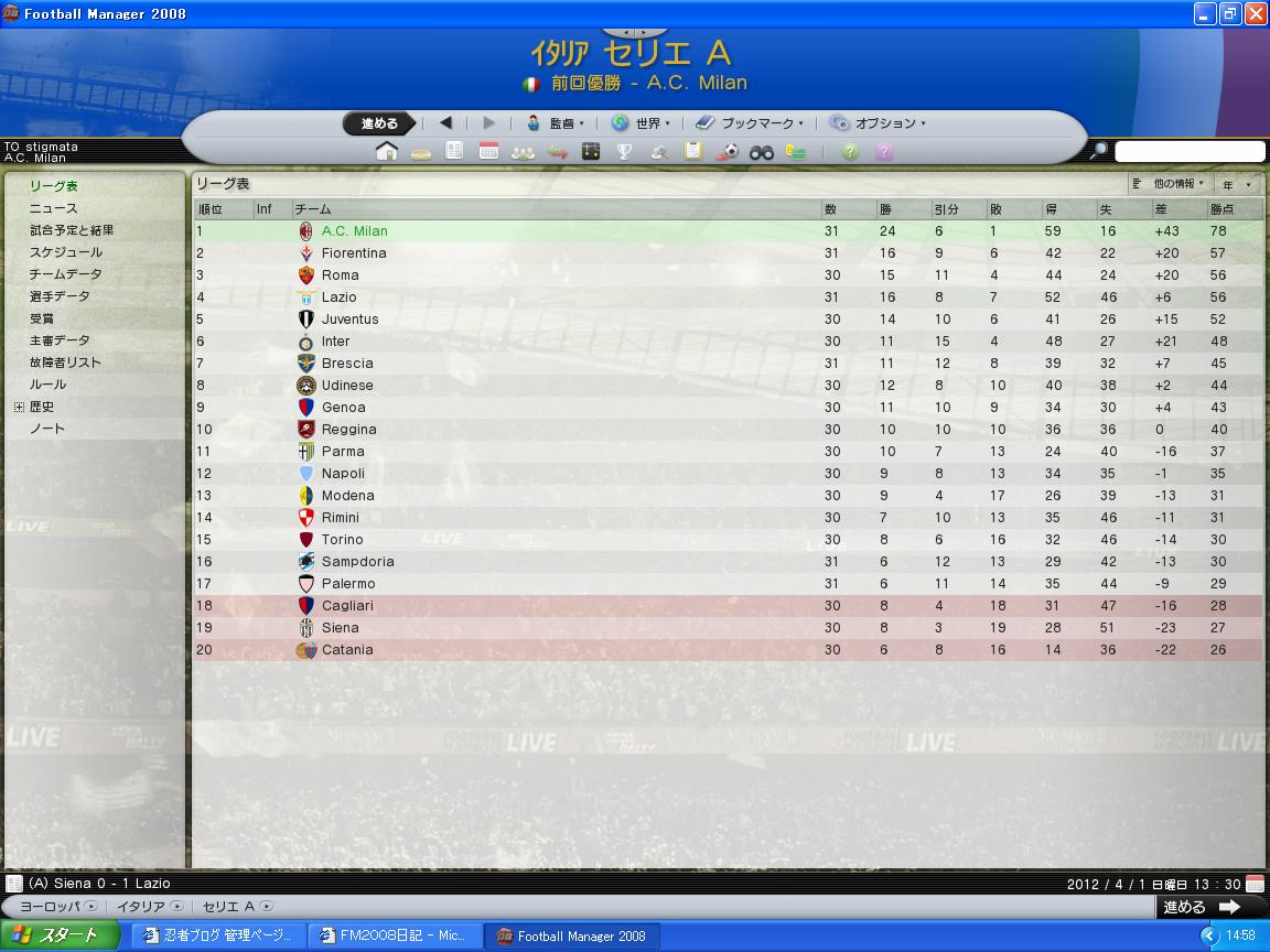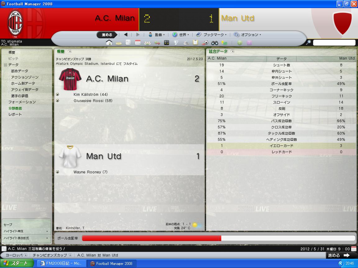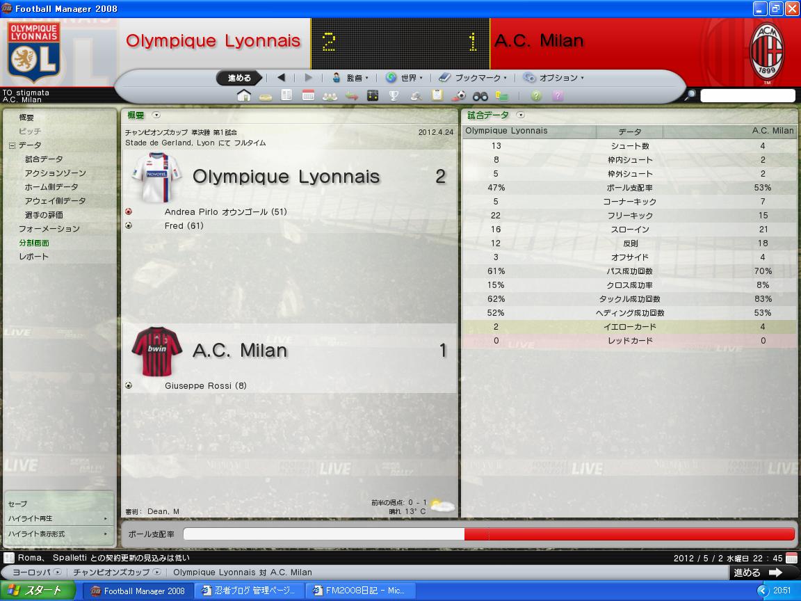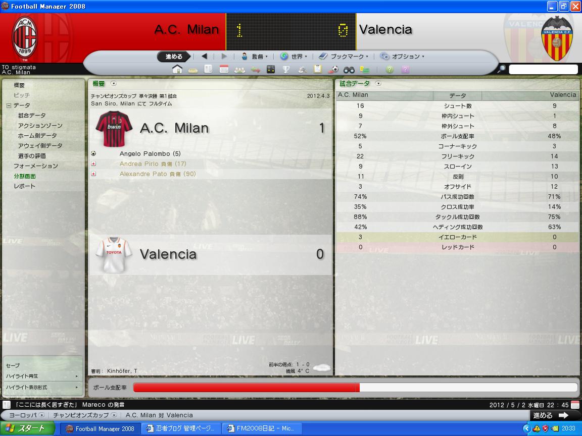 ホームで4-0の圧勝。アウェイで1-0と負けましたが、総得点でミランの一回戦突破'-')b