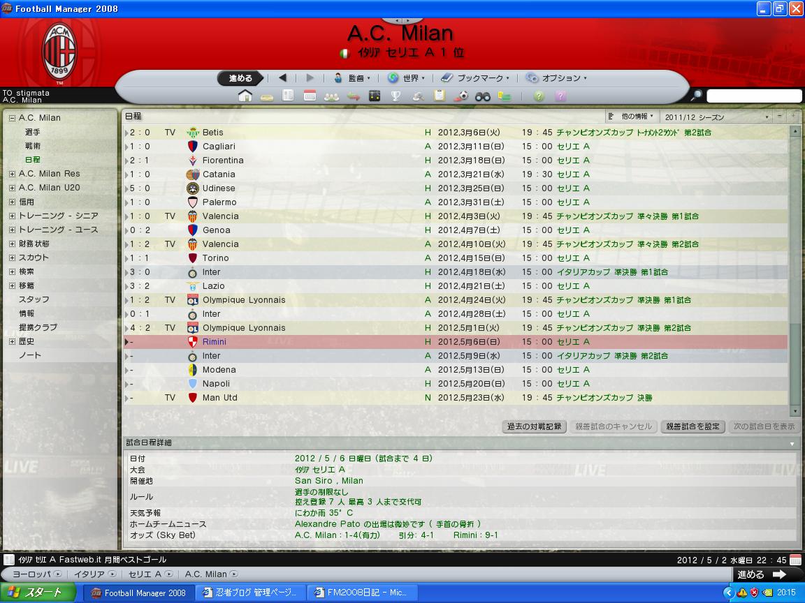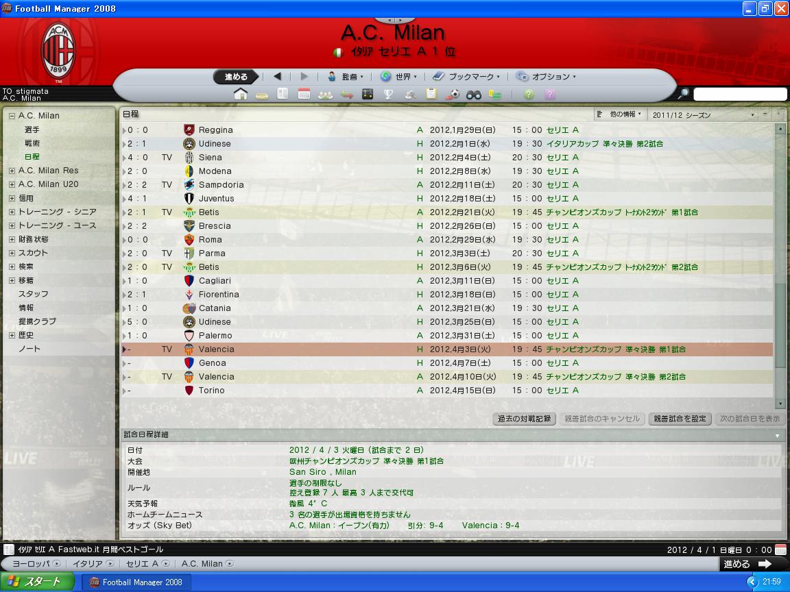 次はチャンピオンズリーグ決勝。イタリアカップ準決勝2ndレグ。