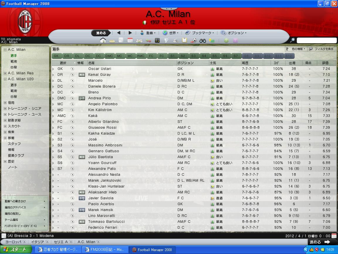 途中カカを休ませてあげれるほど余裕の勝利でした'-')b