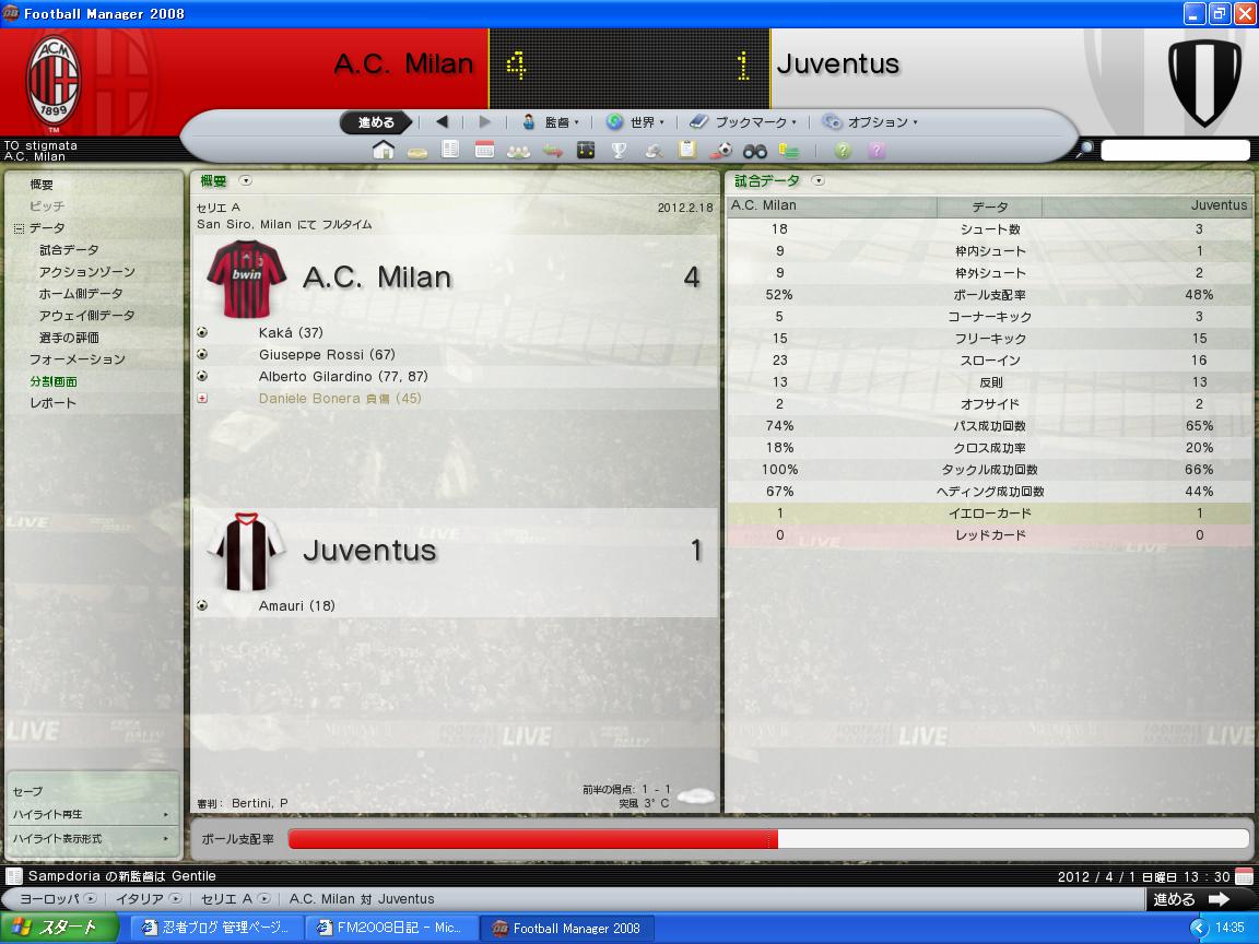 このゲーム、ピルロを欠いていたこともあり、うまく試合をコントロールできなかった感じですね。