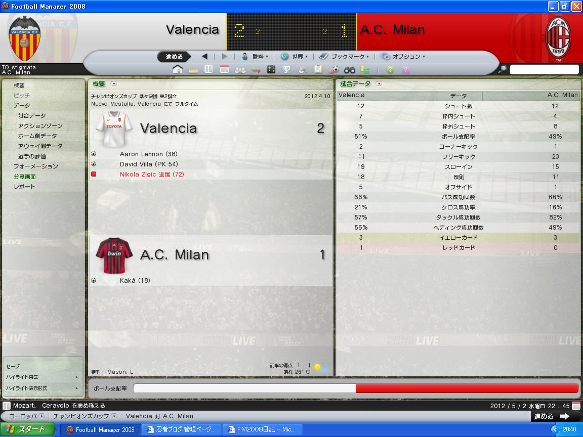 逆転されてかなりあせりましたがww72分にバレンシアに退場者が出たことで、なんとかしのげました'-')